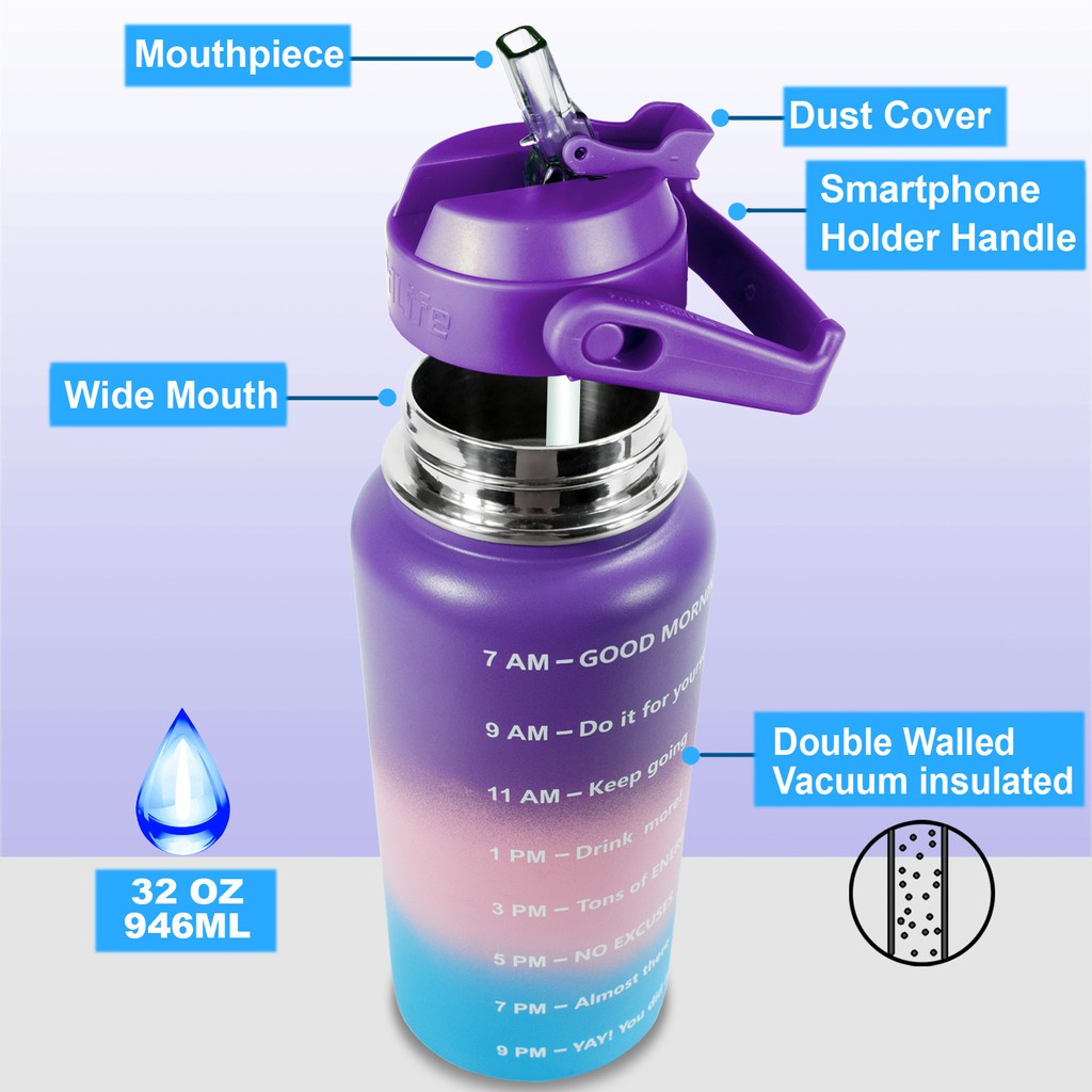 • Thiết kế độc đáo có tương hỗ update vạch chia biết được thời gian và mức nước cần uống vào mỗi múi giờ