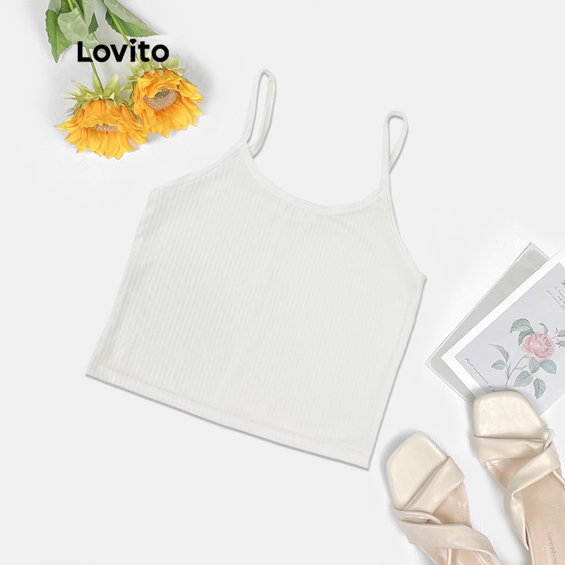 Áo hai dây Lovito L00008 len gân không tay dáng ôm viền trơn tương phản màu xanh lá/ hồng/ trắng/ đen tùy chọn