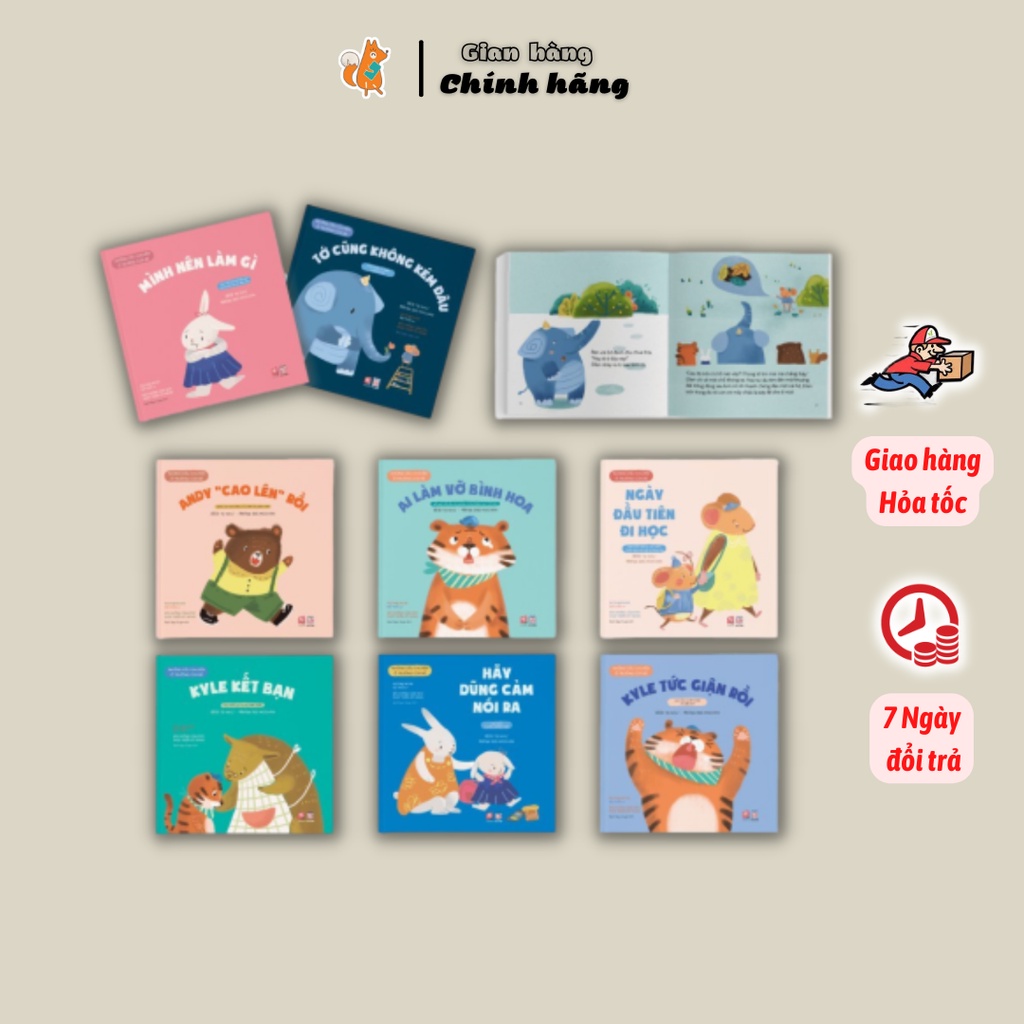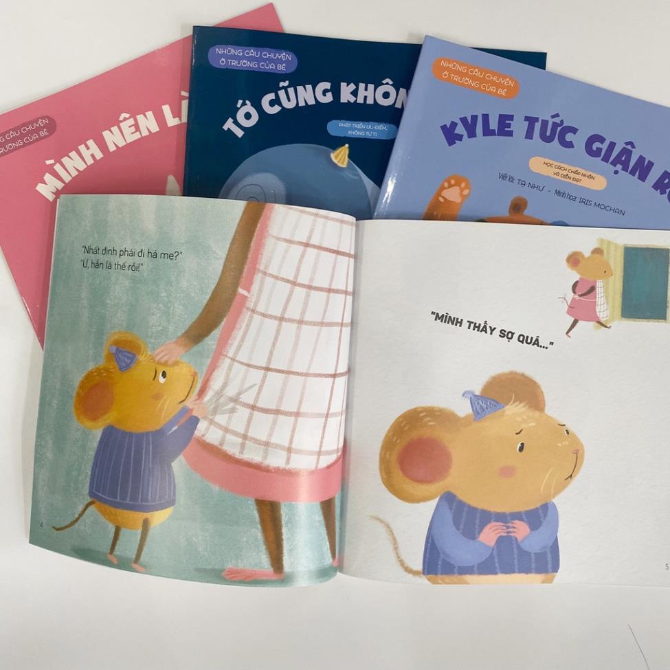 Picture Book - Những câu truyện ở trường của bé Viết lời: Tạ Như Minh họa: Iris Mochan Dịch: Bạch Ngọc Sugar Độ tuổi: 2+ NXB Lao Động Kích thước: 20×20 cm Năm xuất bản: 2022 Số trang: 24 trang Bộ 8 cuốn Những câu truyện ở trường của bé 1. Ai làm vỡ tung bình hoa? 2. Andy cao lên rồi 3. Kyle tức giận rồi 4. Hãy dũng cảm nói ra 5. Kyle kết bạn 6. Mình nên làm gì 7. Ngày đầu tiên đi học 8. Tớ cũng không kém đâu Trường mẫu giáo là môi trường tự nhiên thiên nhiên xã hội đầu tiên của những bé, ở đó có rất nhiều bạn bè và biết bao điều thú vị. Thông qua những mẩu chuyện nhỏ “Những câu truyện ở trường của bé” sẽ giúp những bạn nhỏ học hỏi những quy tắc ứng xử và những thói quen tốt, để mỗi ngày đến trường là một ngày vui. Mỗi cuốn sách là một câu truyện đem đến một bài học kinh nghiệm tay nghề có ích giúp tu dưỡng cảm xúc, phát triển kĩ năng và hình thành tính cách tốt đẹp cho những bạn nhỏ. Những trang sách đầy sắc tố, được thể hiện bằng ngôn từ ngắn gọn và hình ảnh minh họa ngộ nghĩnh, môi trường tự nhiên thiên nhiên sống đời thường nơi trường học của bé được tái hiện đầy sinh động và chân thực. Qua những nhân vật như Andy, Kyle, Linda, Ellen,… những bạn nhỏ sẽ thấy hình ảnh của chính mình. Từ đó, rút ra được những bài học kinh nghiệm tay nghề cho bản thân mình, có tính cách, suy nghĩ, hành vi đúng đắn, tích cực. Bộ sách không riêng gì có đơn thuần là những cuốn truyện tranh mà còn là một cuốn cẩm nang có ích, không thể thiếu cho ba mẹ và những bé những ngày đầu đi nhà trẻ. Cùng mày mò những câu truyện ở trường của con qua cuốn sách tu dưỡng tính cách, cảm xúc thú vị này nhé! #sachchobe #chuyenchobe #sachcamxuc #botruyentranhchobe #sachthieunhi #sachchobe3tuoi #tnbook