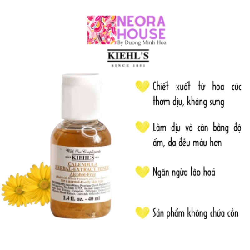 Toner hoa cúc Kiehl’s Calendula Herbal Extract Toner Alcohol-không lấy phí 40ml Nước hoa hồng Kiehls