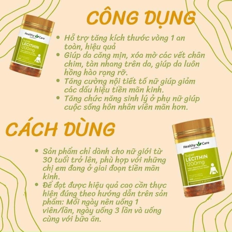 KHÁCH MUA HÀNG LƯU Ý, SP NÀY HIỆN THỊ TRƯỜNG HÀNG KO CHUẨN RẤT NHIỀU,HÀNG NHẬP TRUNG ĐI TÀU RẤT RẺ,RẺ HƠN HÀNG ÚC MUA TẠI ÚC SHOP CHỈ BÁN HÀNG ÚC,KO BÁN HANG TRUNG NÊN KHÁCH LƯU Ý TRC KHI MUA Ạ MADE IN AUSTRAYLIA DATE MỚI NHẤT,HÀNG VỀ MỖI TUẦN [Hàng Úc Bao Check] Mầm Đậu Nành Úc Healthy Care Super Lecithin Đẹp Da, Cân Bằng Noi Tiết Tiet [Date Xa] Lưu ý: Sản phẩm này sẽ không phải là thuốc và không còn công dụng thay thế thuốc chữa bệnh. - Hàng date tiên tiến nhất khách yêu nhé. ------------------------ Cách sử dụng: - Dùng 1 – 3 viên / ngày, uống cùng với bữa tiệc hoặc theo chỉ đinh của bsi - Bảo quản dưới 30C, tránh độ ẩm cao, ánh nắng trực tiếp. Nhớ đóng kín nắp sau mỗi lần sử dụng. #mamdaunanh #lecithin #tinhchatmamdaunanh
