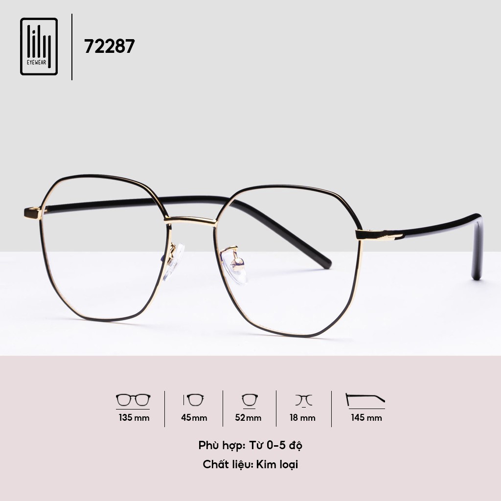Gọng kính cận nam nữ Lilyeyewear mắt vuông sắt kẽm kim loại thanh mảnh dễ đeo 72287
