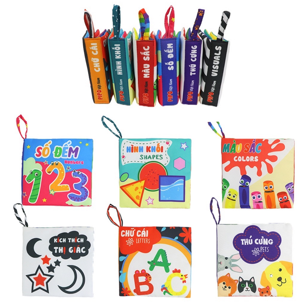 Sách vải cho bé trai sơ sinh 6 tháng 1 tuổi 2 tuổi pipo phát triển trí tuệ Shop Bố Su SVPP002