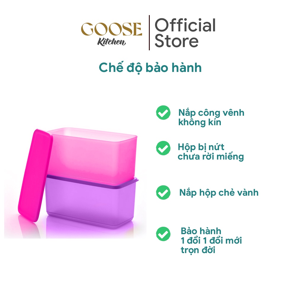 Goose Kitchen tách lẻ hộp Funtastic 3.1L Tupperware lấy chỗ nhập hàng mới . Giá yêu cực mê hoặc đây ạ! THÔNG TIN CHI TIẾT SẢN PHẨM HỘP MÁT FUNTASTIC 3.1L: - Dung tích: 3.1L - Kích thước: 26 x 13 x 12.8cm - Nhiệt độ bảo vệ an toàn và đáng tin cậy: 0oC - 80oC ƯU ĐIỂM VÀ TIỆN ÍCH CỦA SẢN PHẨM HỘP MÁT FUNTASTIC 3.1L: - Chất liệu nhựa nguyên sinh, bảo vệ an toàn và đáng tin cậy tiếp xúc với thực phẩm - Nắp hộp thiết kế kín khí, giúp mùi của thực phẩm không thoát ra ngoài - Chất liệu nắp dẻo, giúp đóng mở thuận tiện và đơn giản - Thiết kế thông minh hoàn toàn có thể xếp chồng lên nhau - Chất liệu nhựa xuất hiện phẳng nhám tay giúp cầm chắc tay hơn CÁCH SỬ DỤNG & BẢO QUẢN CỦA SẢN PHẨM HỘP MÁT FUNTASTIC 3.1L: - Hộp Funtastic có dung tích lớn và thiết kế nắp kín khí giúp dữ gìn và bảo vệ thức ăn đã nấu hoặc thực phẩm đã qua sơ chế như rau củ quả, trái cây cắt sẵn,… luôn tươi ngon trong ngăn mát tủ lạnh - Ấn tay vào giữa nắp, dùng 1 tay khác kéo nhẹ thẻ mở ra để thoát khí thừa trong hộp ra ngoài - Không dùng được trong tủ đông hoặc lò vi sóng, máy hấp tiệt trùng - Tránh sử dụng vật sắc nhọn để chùi rửa - Tránh đựng thực phẩm có nhiệt độ cao hơn 80 độ C - Không tiếp xúc hoặc để sản phẩm gần nguồn nhiệt để tránh nóng chảy, biến dạng CHẾ ĐỘ BẢO HÀNH CỦA GOOSE KITCHEN CHO SẢN PHẨM HỘP MÁT FUNTASTIC 3.1L: - Goose Kitchen cam kết bảo hành trọn đời đối với sản phẩm hộp mát Funtastic 3.1L - Các lỗi sau sẽ được Goose Kitchen bảo hành: * Sản phẩm hoặc bộ phận sản phẩm bị cong vẹo, bong tróc lớp nhựa trên mặt phẳng * Thân sản phẩm bị rạn nứt trong quá trình sử dụng thông thường và không còn tín hiệu cố ý làm hư hỏng sản phẩm * Nắp sản phẩm bị rách hoặc bị chẻ đôi tại vành nắp #chiu #nhiet #tupper #ware #tup #dung #nhua #luc #ben #dep #chinh #hang #goose #kitchen #lo #hop #bep #nha #ngong #tru #dong #mat #lanh #an #toan #do #thuc #pham #magic #bao #quan #tuoi #xanh #tim #hong #den