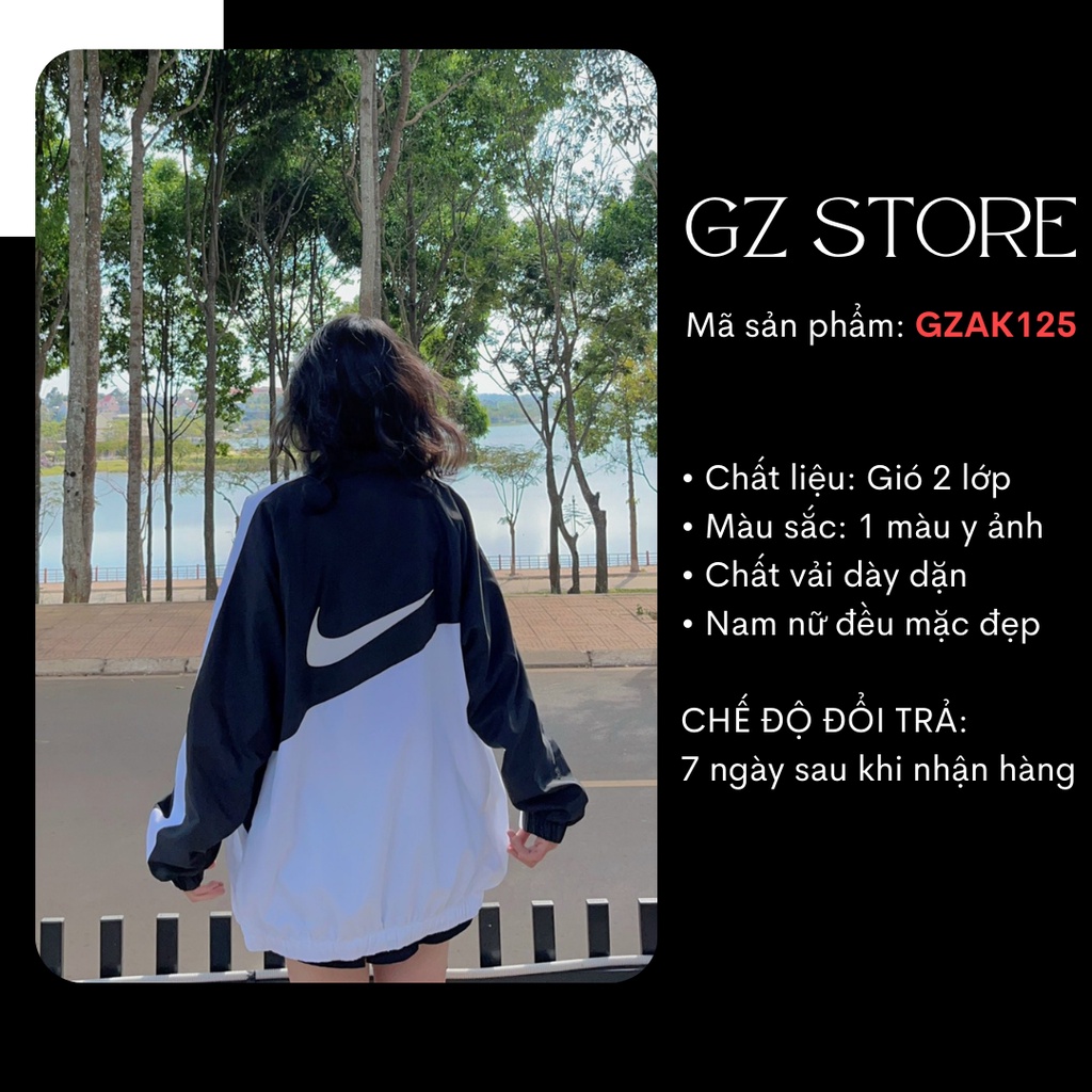 Áo khoác gió Nike form rộng dài tay chính hãng unisex nam nữ 2 lớp cực chất GZ Store GZAK125