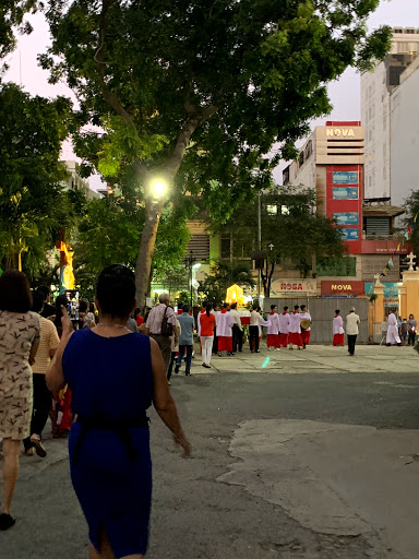 Khu vực chợ lề đường, thường xuyên kẹt xe nhưng cổng nhà thời thánh thường xuyên mở sân rộng, vẫn yên tĩnh.