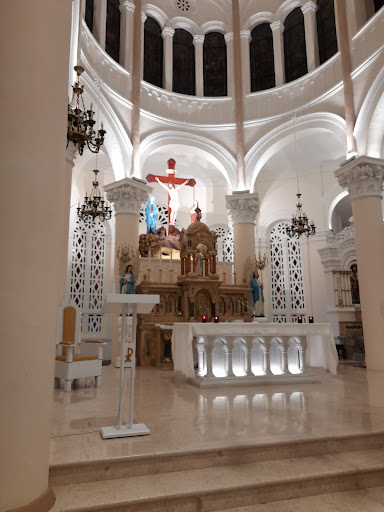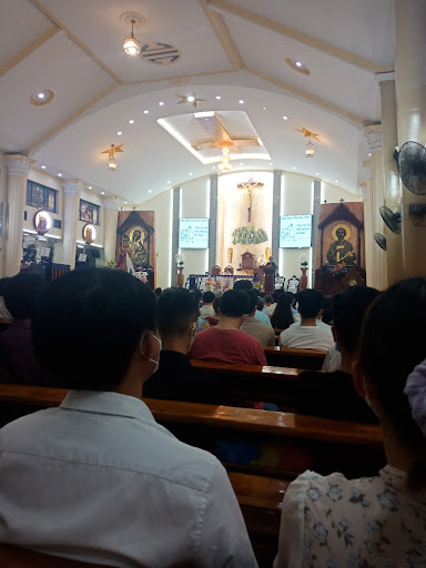 Nhà thờ đẹp lắm, có chỗ gửi xe, sân rộng có chỗ ngồi bên phía ngoài, bên trong trang trí đẹp.