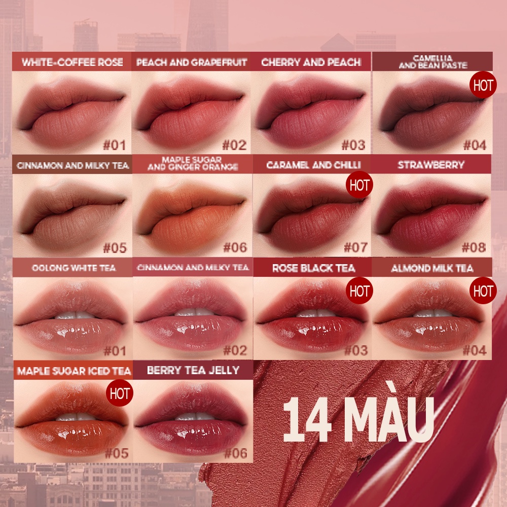【HERORANGE】Phù thủy son bóng mờ sương mù nước Son môi xinh đẹp brillant à lèvres mat de sorcière