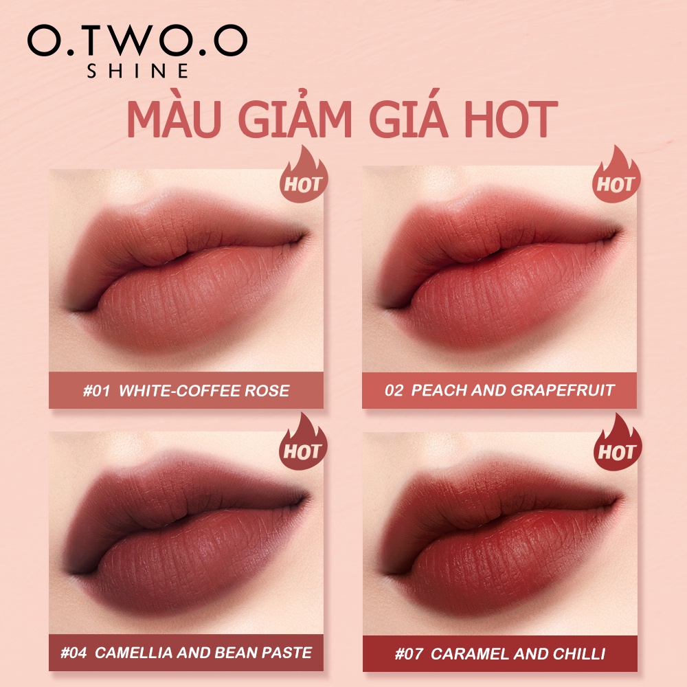 Son Bóng Nội Địa Trung O.TWO.O Môi Màu Lì tông nhung lì Cổ Điển Lâu Trôi 8 màu tùy chọn 3ml