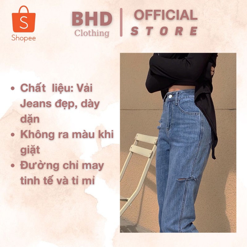Quần Jeans Nữ Ống Loe BHD Clothing, Quần Bò Xẻ Gấu Dáng Lưng Cao Siêu Hack Dáng