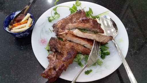 Miếng sườn to bằng miếng bít tết, mình hay gọi là Quán sườn khổng lồ. Ướp thịt ngon. Sườn là món signature của quán, ai cũng tranh mua, nên sau 12g khách đông, đợi hơi lâu. Nhân viên dễ thương.