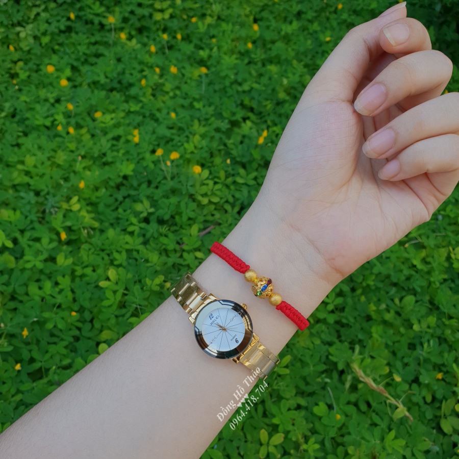 Đồng hồ nữ Halei 502 chống nước dây thép vàng Tặng Pin Dự Phòng
