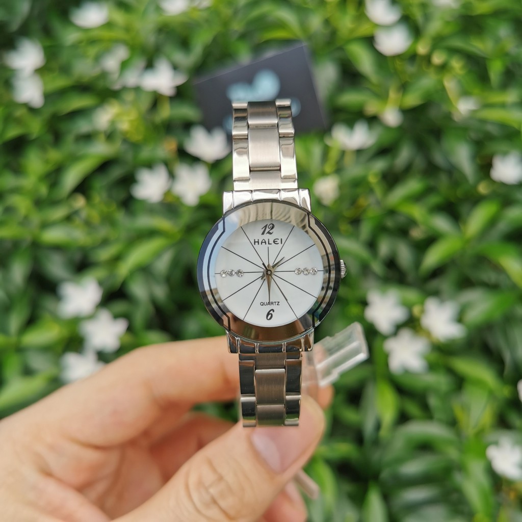 Đồng hồ nữ Halei chống nước dây bạc Tặng Pin Dự Phòng có size Nam