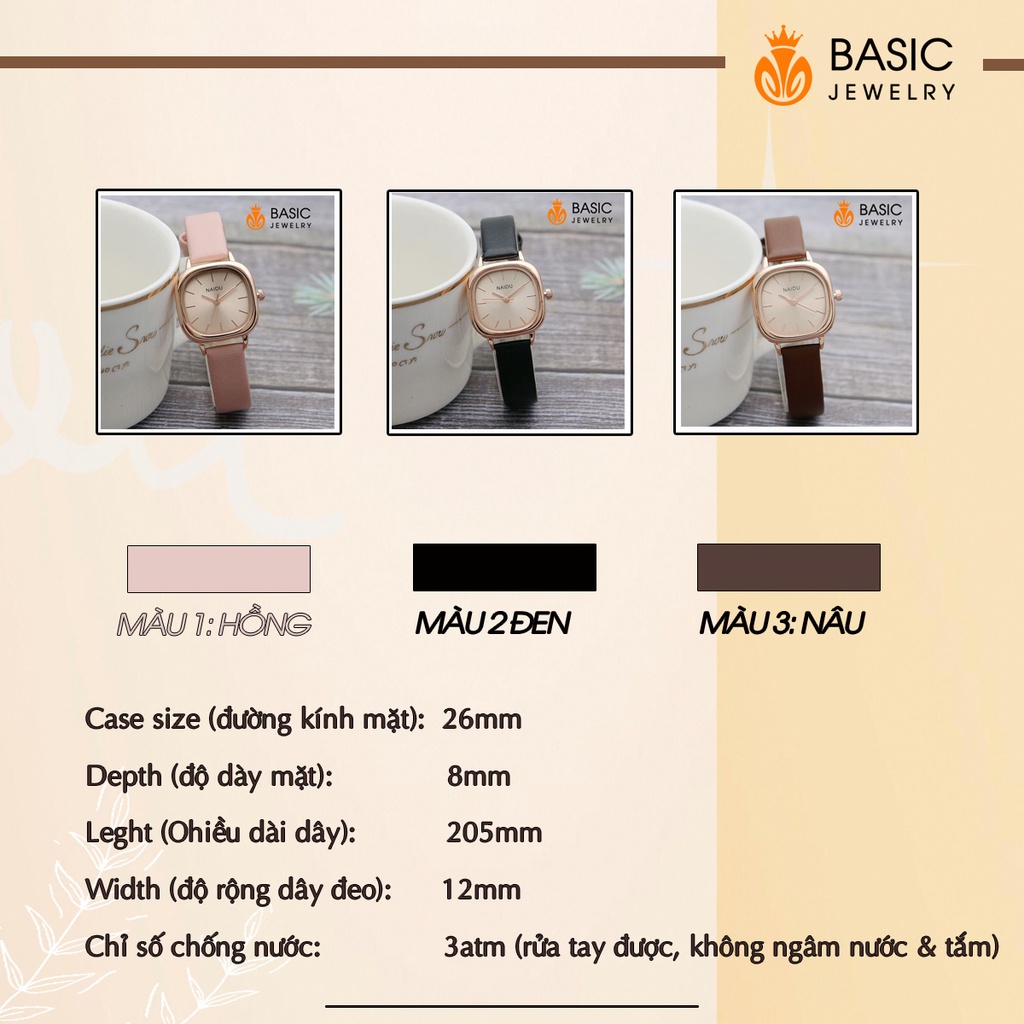 Đồng Hồ Nữ Dây Da Cao Cấp Chính Hãng Doukou Mặt Vuông Đẹp Thanh Lịch Giá Rẻ Basic Jewelry