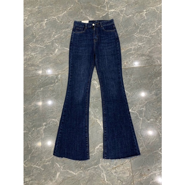 Quần jean flared jean sống lưng cao ống đứng loe nhẹ form hàn ( XEM HÌNH CUỐI ) màu xanh đậm có mài rêu
