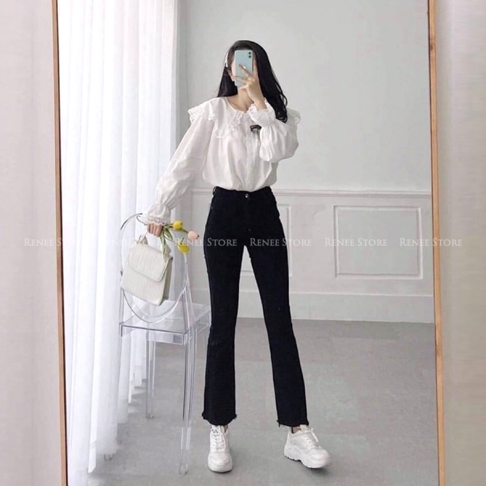 Quần jean nữ ống loe RENEE quần bò giấy dáng ôm với vật liệu bò giấy mềm mịn, siêu co và giãn. Quần bò giấy có chất dày dặn, co và giãn 4D, cạp cao, đường may kỹ, không nhăn hack dáng tương hỗ cho những cô nàng thuận tiện và đơn giản phối với mọi loại trang phục rất khác nhau. tin tức sản phẩm: - Size: S từ 40-43kg eo