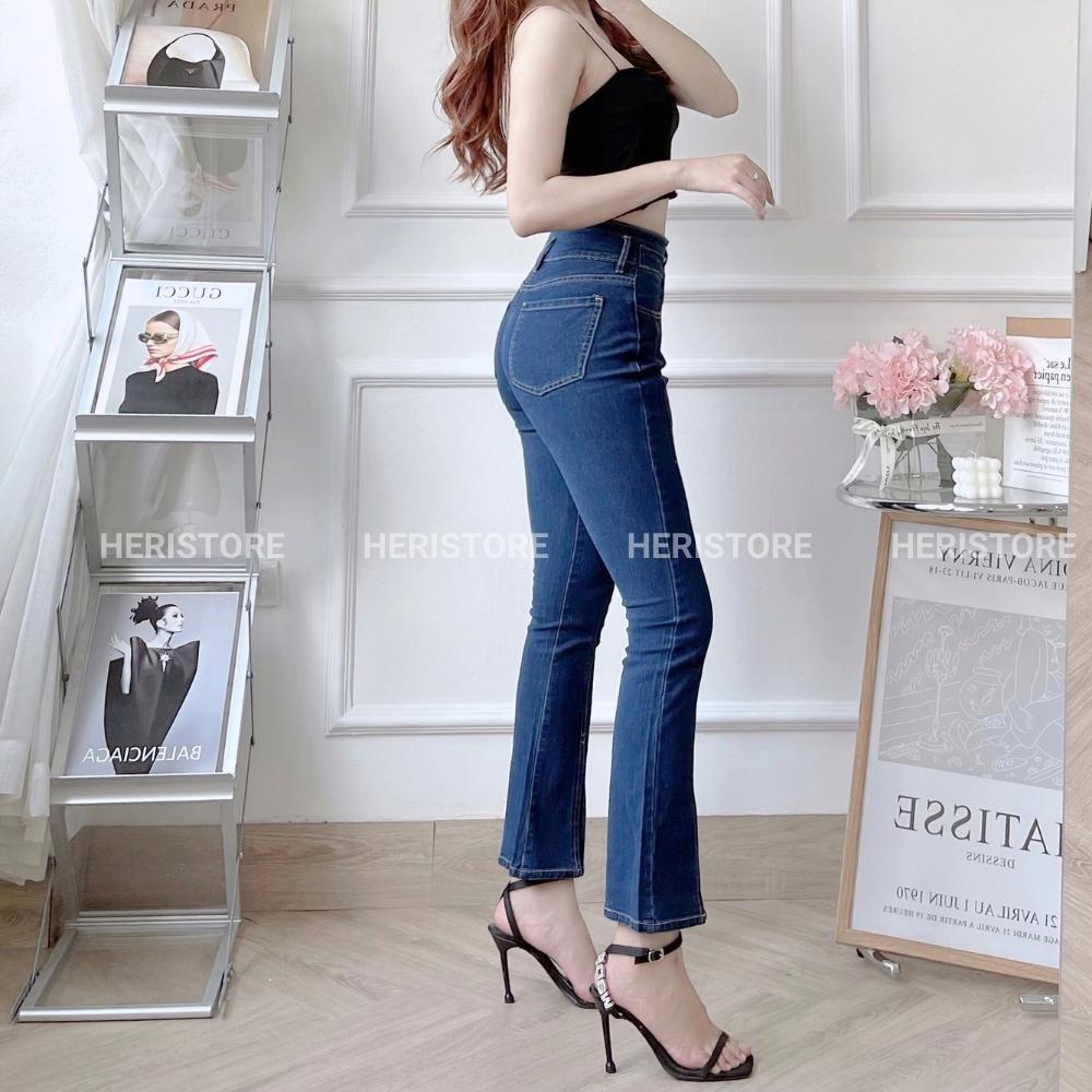 Quần jean nữ Heristore ống loe sống lưng cao, quần skinny jean nữ ôm dáng vải co dãn