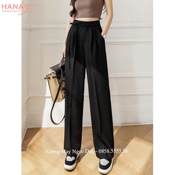 Quần ống rộng nữ sống lưng cao nơ thắt sống lưng khóa trước vải tuyết mưa mềm kiểu quần tây nữ ống rộng đi học văn phòng dạo biển