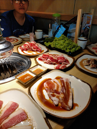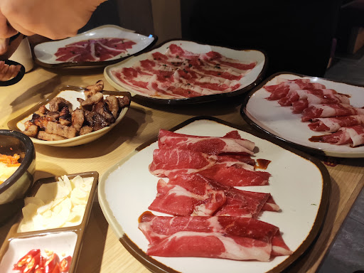 Buffet ở đây giá 399k/người tối trong tuần. Gọi món trên tablet khá cồng kềnh vất vả vì những bạn nhân viễn không hướng dẫn kĩ để ko gọi sang phần tốn thêm phí. Thần kinh phải siêu ổn định mới ăn được ở đây vì nhạc dội vô tai rất ồn ào, sức ép từ mùi khói nồng nặc toả ra từ khay nướng cũng là vấn đề khiến bạn phải gồng gánh trước khi thưởng thức món thịt ướp sốt khá đậm đà, tuy nhiên đông lạnh chứ không phải thịt tươi.