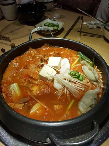 Lẩu thì có 2 loại kim chi và lẩu nấm bò. Ăn thử lẩu bò thì chán vô cùng mở ko là mở ăn vô 1 2 miếng nó ngấy ghê, lẩu có để miếng vô sẳn ăn cũng đc ko dai. Ăn thêm mì hay j thì gội.