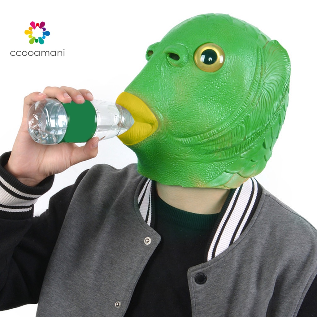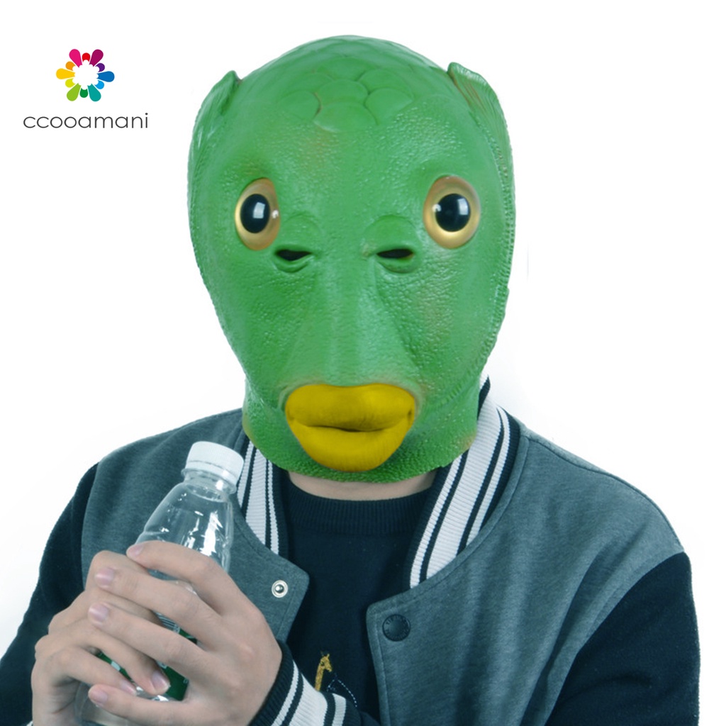 Deryu| Mặt nạ hóa trang hình đầu cá xanh lá bằng silicon cho những người dân lớn