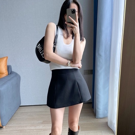 Chân váy xếp ly tennis sống lưng cao Merly Official màu đen nâu dáng ngắn chữ A có lót quần bên trong - chân váy ngắn văn phòng: Chân váy tennis Chân váy xếp ly Chân váy sống lưng cao Chân váy ngắn Chân váy văn phòng Chân váy xếp li Chân váy xếp ly tennis là một trong những items tầm cỡ trong tủ đồ của tất cả chị em phụ nữ. Thiếu đi chân váy xếp ly là thiếu đi sự điệu đà nữ tính, thiếu đi một nét đặc trưng của con gái Chân váy có nhiều loại: chân váy tennis mang sắc tố retro basic đơn giản, chân váy sống lưng cao điệu đà duyên dáng, chân váy xếp li đỏng đảnh đáng yêu, chân váy xếp li ngắn quyến rũ, chân váy ngắn dịu dàng êm ả, chân váy chữ a thướt tha, chân váy văn phòng lịch sự mà vẫn không kém phần đậm cá tính…. Mỗi chiếc chân váy ngắn mang trong mình một nét trẻ đẹp riêng biệt không trộn lẫn. Chân váy tennis ngắn lại mang lại sự thanh lịch, dịu dàng êm ả mà trang nhã tới lại kỳ. Bạn hoàn toàn có thể mặc đi làm, đi chơi, đi biển đều xinh lắm nha 𝗠𝗮̀𝘂 𝘀𝗮̆́𝗰:Đen, Nâu 𝗖𝗵𝗮̂́𝘁 𝗹𝗶𝗲̣̂𝘂:Chân váy đen may vải tuyết mưa dày dặn màu đẹp không như loại kém chất lượng trên thị trường,vừa co và giãn nhẹ mặc vận động thoải mái 𝗦𝗶𝘇𝗲: - S: 40