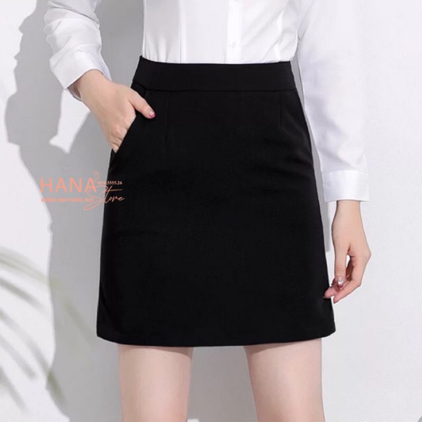 Chân váy chữ A ngắn sống lưng cao vải co và giãn màu đen có túi quần lót trong dáng chân váy ngắn văn phòng đi làm học biển hẹn hò