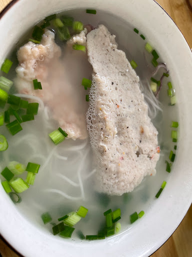 Chả cá hay chả mực gì đó mình thấy nó hơi ngọt , còn đc 1 miếng thịt siêu mỏng dính và thấy nó chẳng liên quan tới tô bún :))