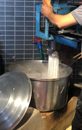 Bún tươi được chủ quán làm tại chỗ bằng nhà bếp củi , máy móc thô sơ, chả cá và tôm tươi ngon, tiếc là lúc tới hết chả mực, do làm thủ công nên người tiêu dùng phải đợi hơi lâu so với một quán bún thông thường