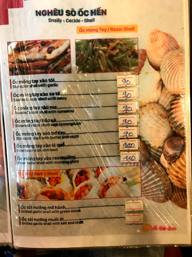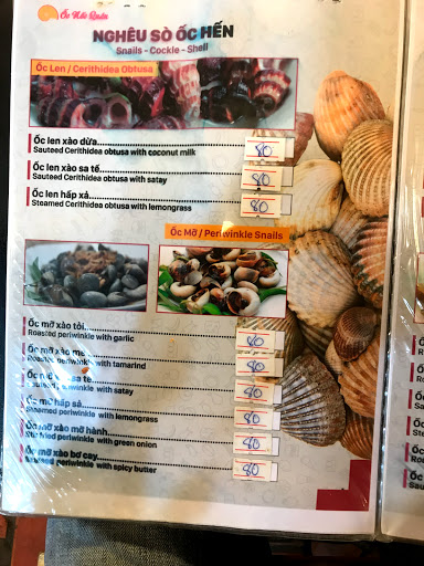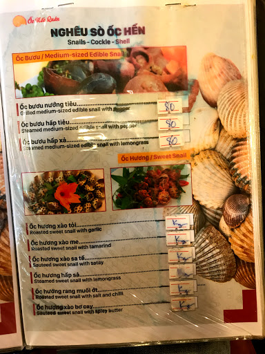 Đồ ăn ngon, thức ăn mang ra khá nhanh, nhân viên cấp dưới phục vụ tốt, vì đã tới nhiều lần rồi, nên cảm thấy thức ăn ngày càng ngon, quán đã cải tổ về cách phục vụ tương đối tốt. Nếu ốc móng tay tươi hơn thì là vấn đề 10+ cho quán. Mãi lo ăn mà quên chụp hình, đồ ăn trang trí khá đẹp rất tiếc là đói quá nên ko chụp ăn xong là hết đẹp để chụp rồi.