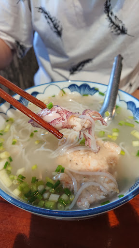 Ăn bún quậy ở đây mới biết bún quậy ở SG là hàng nhái. Giá quá hợp lý 55k 1 tô truyền thống có 2 miếng chả tôm và chả cá ngon tuyệt. Đặc biệt có đến 3 con mực trứng rất ngon. Đến Phú Quốc mà ko ăn bún quậy thì chưa tới Phú Quốc. Ăn 2 bữa tiệc 2 tô mà giờ tính ngày mai ăn nữa. Ai ăn lần đầu chắc hơi lạ miệng do nước nhạt khó ăn nhưng đó đó đó là đặc trưng của bún quậy ăn rồi thấy ghiền.