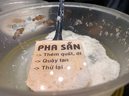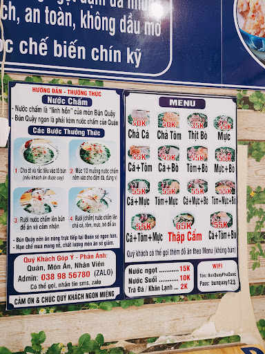 ✔Trong lúc đợi chuông rung, bạn nên đi làm nước chấm (phần không thể thiếu khi ăn bún quậy, đủ vị chua cay mặn ngọt, làm cho bún đậm đà và ngon hơn). Bạn hoàn toàn có thể tự làm nước chấm theo bảng công thức hướng dẫn của quán, hoặc lấy nước chấm quán đã làm sẵn.