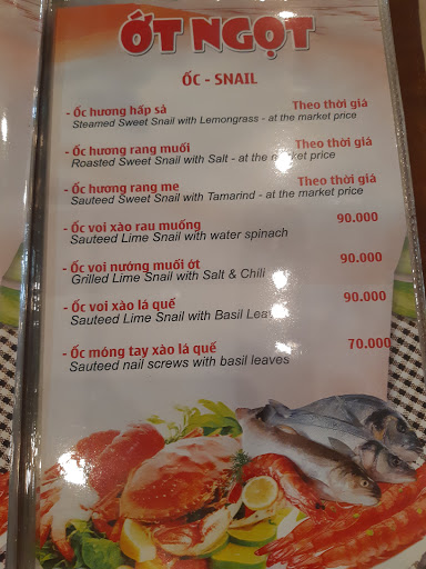 Ngon, đa dạng món, món ăn thủy hải sản tươi. Ốc hương và tôm tích rất ngon. Nhân viên nhiệt tình, nhanh nhẹn.