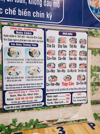 19 đánh giá Địa chỉ: 262 Đường Nguyễn Trung Trực,P,Phú Quốc,Kiên Giang 92500, Việt Nam Liên lạc: 0838718714 Website: ://bunquay/Quán chỉ 2 nhân viên cấp dưới . Mình tự làm nước chấm và tự bưng ra nước tự lấy. Ăn thì cũng oke bth giá 55 cành cũng oke có cái đợi hơi lâu máy lạnh quạt mát nhưng hơi nóng