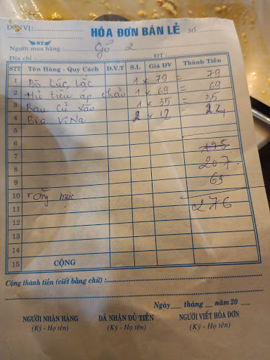 - Giá: dân dã. Có ảnh bill thanh toán, mọi người tham khảo nhé.