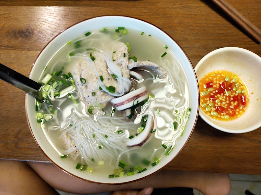 - Bún: cả nhà mình đánh giá là ngon, nếu bạn nào có khẩu vị thích mặn thiệt mặn cay thiệt cay thì tránh việc thử vì vị nước lèo ngọt thanh chút mặn chút cay vừa đủ và đặc biệt chả cá và chả tôm rất ngon.