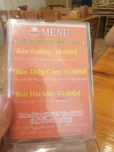 Quán chuyên bán bún, bánh canh, hủ tíu... Đặc biệt là bún nước lèo sóc trăng mùi vị rất lạ và rất ngon. Giá cả phù hợp (25k), không khí rộng rãi và đẹp. Mọi người thường đến đây ăn sáng, ăn trưa rất đông. Điểm phiền phức là quán cặp sát quốc lộ 30 nên đậu đỗ xe đôi lúc gặp trở ngại vất vả ...