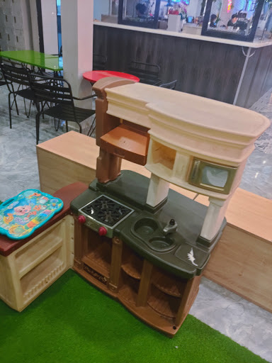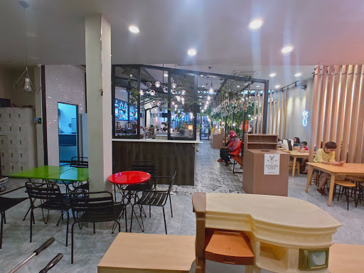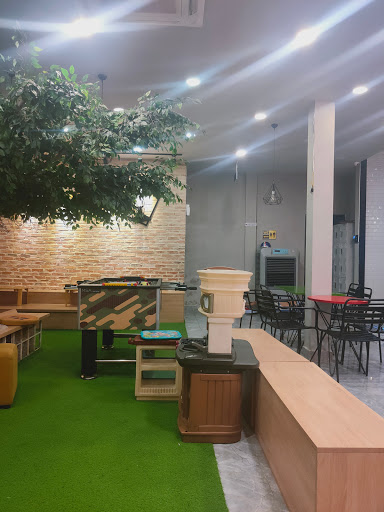 Quán bày trí đẹp và tân tiến, nhìn tươi mới rất đẹp đẽ, vị trí thoáng rộng, không khí thoáng mát dịu mắt dễ chịu và thoải mái, phía trong có một khu dành con trẻ em, có một bàn bóng đá bàn dễ thương.