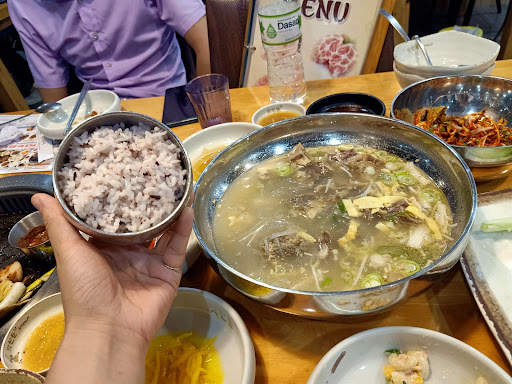 Quán của người Hàn và được rất nhiều người Hàn tâm đắc tới ăn, đôi khi khách đông xếp hàng nên nên book bàn trước. Nhưng rất xứng đáng bởi chất lượng đồ ăn và phục vụ đều làm mình hài lòng. Món nhất định phải thử là súp sườn bò, đương nhiên thịt nướng không thể bỏ qua, có nhân viên cấp dưới nướng thịt giúp. Rau tươi và fullfill, có tráng miệng kem.