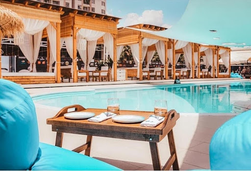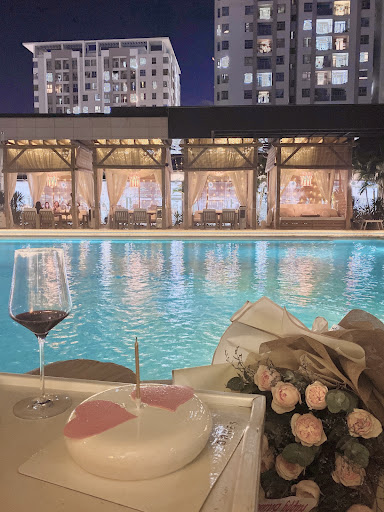 Điểm nhấn là hồ bơi to có đèn ở giữa, hai quầy bar nằm hai bên và mở nhạc rất cuốn