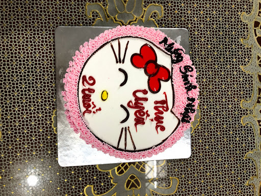 Bánh đẹp, giá cả OK. Ở đây nếu muốn thêm chocolate có hình loài vật tuổi, ví dụ con mèo, hoàn toàn có thể mua thêm gắn vào bánh. 3 con mèo hello kitty này là mua thêm.