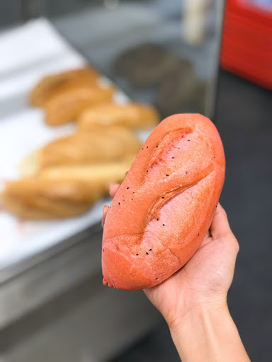 Mấy nay trên mạng rần rần bánh mì thanh long và cuộc giải cứu nông sản Việt của chú Kao Siêu Lực nên tôi cũng đi mua ủng hộ liền. Mẹ mình coi xong cũng muốn ăn cái kêu con gái chạy ra tận Nguyễn Trãi để mua :)) Mà mình ở Tân Bình nên ghé đây trước để coi có ko tại vì đằng nào thì cũng đi ngang qua thì may quá là có bán. Mình đi lúc 20:30 thì người ta bảo hết rồi quay lại lúc 21:30 nha. Lúc mình quay lại thì mọi người đang xếp hàng trật tự trước tủ bánh mì. Đến lúc bánh ra thì lại ko bỏ vô tủ nữa mà đem vô quầy bán liền lun nên mọi người ùa vào quầy ko hàng lối gì nữa :) may mà cũng không nhiều nếu không muốn nói là rất ít khách nên hỗn loạn nhẹ :) Hết đợt 1 may quá đợt 2 có liền ở đầu cuối tôi cũng mua được. Sau khi khách mua hết còn dư mới đem để ở tủ bánh nha. Bánh có màu đậm hơn thông thường. Vì vừa mới ra lò nên nóng giòn ăn ngon nhưng độ giòn ko phải kiểu giòn rụm như bánh mì thông thường đâu nha. Dĩ nhiên là ko có mùi vị thanh long, ai làm bánh sẽ hiểu nhưng mà hậu vị mình cảm nhận được rất khác lạ. Chỉ 6k/ ổ rất đáng để giải cứu nè.