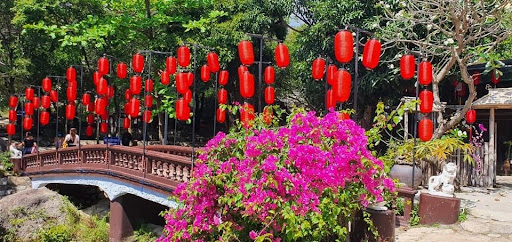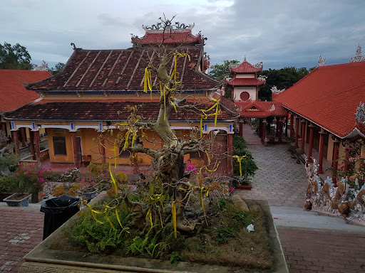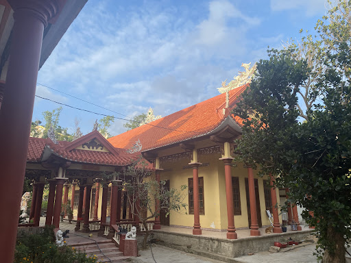 Cảnh chùa khi lên rất cao nhìn xuống rất đẹp, khung cảnh dân làng thanh bình ấm áp, xa xa có bãi tắm biển hình móng ngựa.