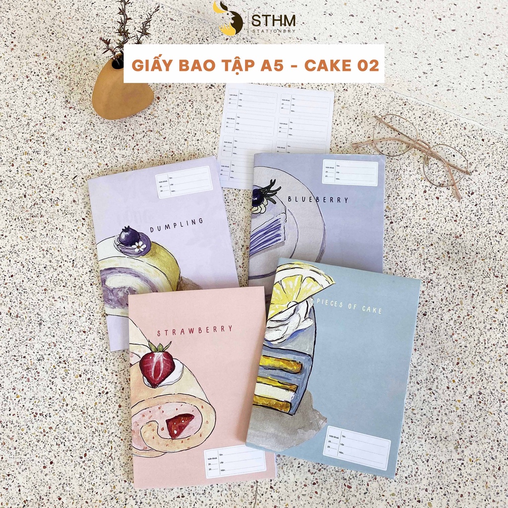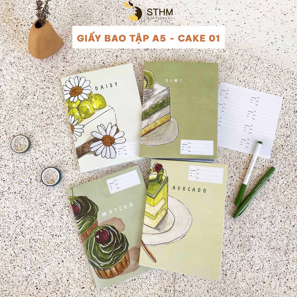 Giấy bao tập A5 - Cake - Tặng kèm 8 nhãn vở - Giấy kraft trắng 100gsm - Giấy dai, chống thẩm thấu nhẹ - STHM stationery