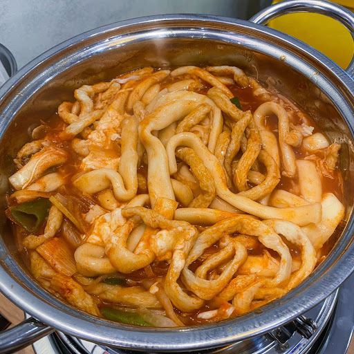 Lẩu tokkbokki 7 phút đặc sản của quán với sợi tokkboki lạ ai dai dai cùng phomai béo ngậy tan chảy trong nước kimchi nóng hổi cay cay 😊