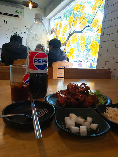 Edit: lần sớm nhất ghé thăm khá thất vọng. Gà ít sốt hơn, món gà chiên không cũng không hề loại sốt pha riêng mà chấm tương cà và ớt. Bột chiên cũng nhiều hơn nữa thịt gà. Rau trộn hết không cho thêm, củ cải ngâm không còn nữa.