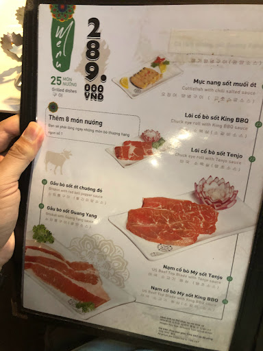 - Mình đi 2 người, tôi cũng nói đây là lần đầu ghé( mình đặt bên HANA nhưng hết bàn mới phải đặt qua đây - bất đắc dĩ), nhờ nhân viên cấp dưới mang đồ nướng lên, nhân viên cấp dưới bưng MỘT dĩa thịt bò, kèm 2 miếng thịt heo, tôi cũng bỏ lên nướng..thịt bò thì ăn cũng tạm, nhưng thịt heo thì hôi thiệt sự....