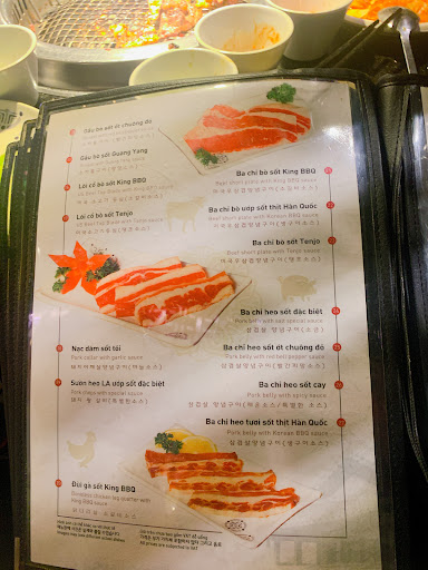 Thực đơn đúng chuẩn theo chuỗi King BBQ Redsun tuy nhiên nếu đi ngày thời điểm vào buổi tối cuối tuần hoặc ngày lễ sẽ ít lựa chọn hơn (chỉ có mức giá cao hơn ngày thường)