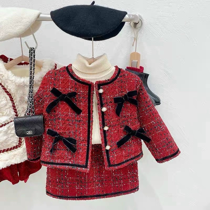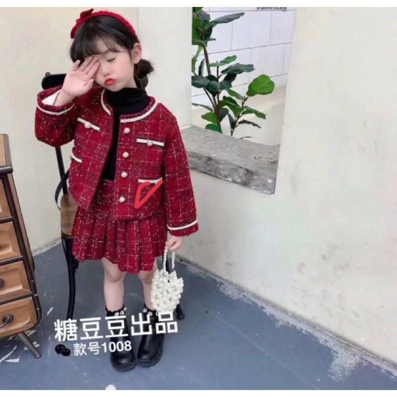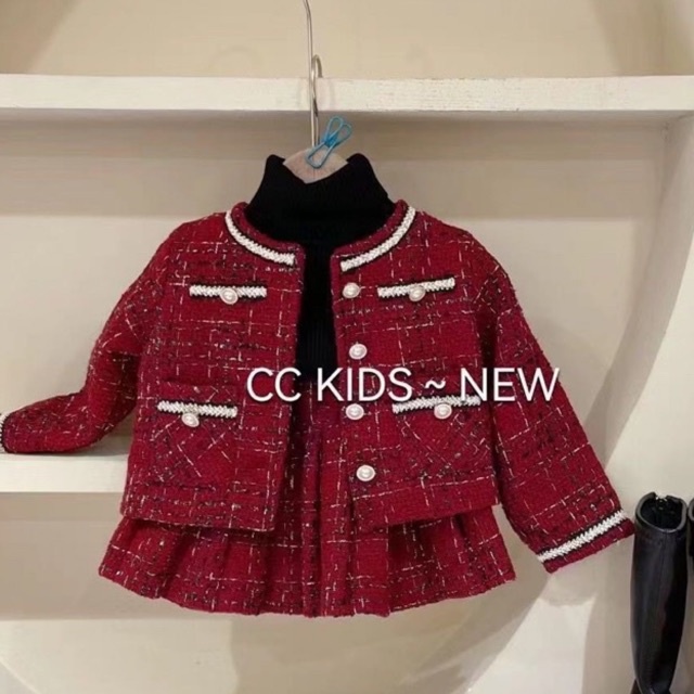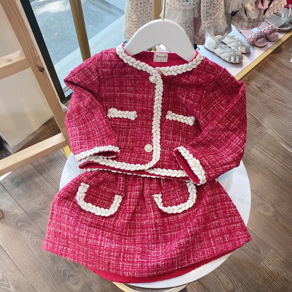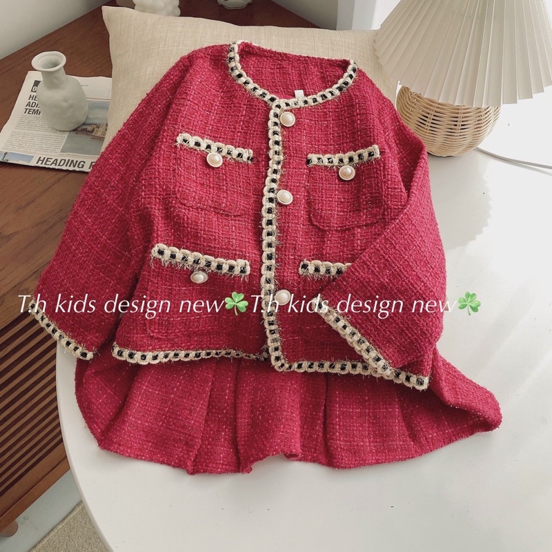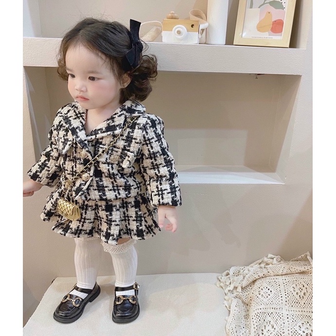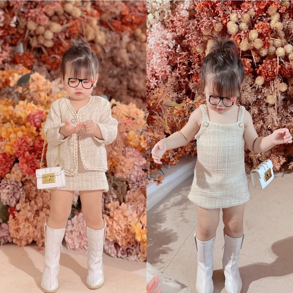 Set váy bé gái - Set dạ Tweed cao cấp cực sang chảnh - 3 Chi tiết: Áo khoác + Áo trong + Chân váy liền quần 8-24kg