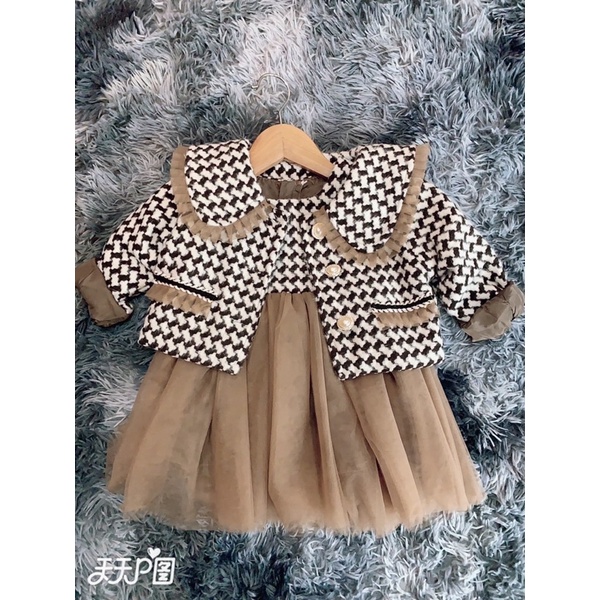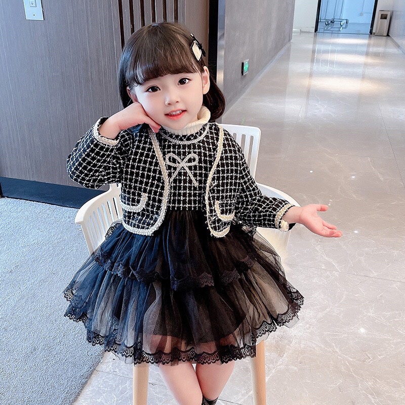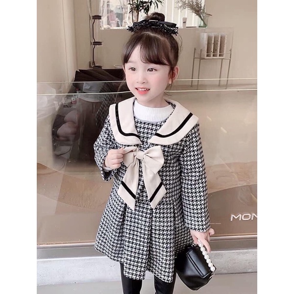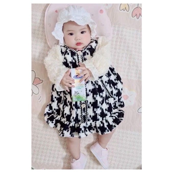 Váy cho bé trai, set váy dạ bé gái 10-22kg, váy dạ phối ren, áo dạ tweed bé gái